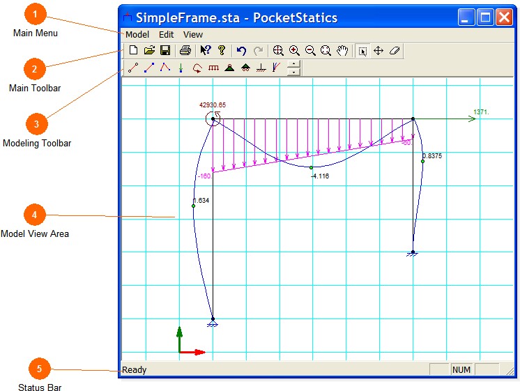 Includes standard file and printing buttons, undo/redo, zooming/panning buttons, in addition to basic model tools.